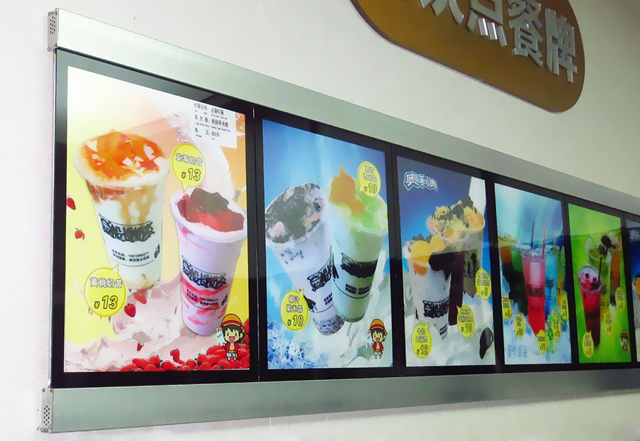 點餐燈箱給我們帶來了便利,同時點餐燈箱成為了餐廳里的一道風景線,讓人眼前一亮。點餐燈箱片可隨時變更菜品、菜價、圖片、說明,可隨意添加新品,可隨時靈活促銷,避免反復制作菜單的繁瑣和重復投資,同時也便于快速制作和更新。
