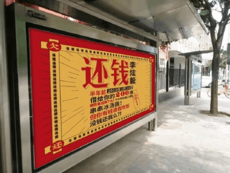 網上流傳的照片中,涉及5個不同位置公交車站旁的廣告牌和1個電梯間內的廣告牌。廣告牌為紅邊黃底,在中間非常顯眼的位置,寫著“還錢李炫毅”,下面還有幾行小字:“半年前2019年2月23日,借給你的200塊,現在能還我了么?半年來你每天請我串串冰湯圓!但你有錢請我吃飯,沒錢還我嗎?”一些網友對這組圖片表示不解:“借了200塊,一直不還,但是這大半年天天請他吃飯,真是謎一樣的操作。”
