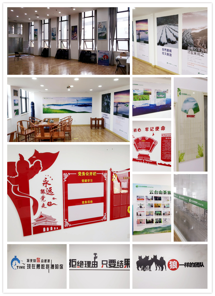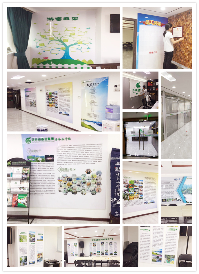 云臺山茶旅集團武漢分社是湖南總部剛入駐武漢的分公司,以景點景區開發建設為主導,集云臺山大葉茶種植、旅行社、餐飲酒店、旅游特產、休閑養老、文化教育傳媒、特色體育項目并重發展的多元化綜合型企業集團。這次新的分公司為了先前沒有做到位的品牌形象建設,意將企業內部的每個角落都覆蓋,這就需要大量的人力和物力作為支撐,而一般的公司工期長,產品價格貴,不能滿足他們的需求,正因為要求嚴格,他們一直沒有尋找到合適的合作伙伴,直到通過一次偶然的朋友介紹,與廣告公司的銷售經理取得了聯系。