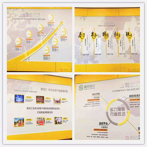 北京恒天明澤基金有限公司是北京上市集團(tuán)恒天財(cái)富的武漢下屬公司,主營(yíng)業(yè)務(wù)是財(cái)富管理,其中包括取款、投資、貸款等服務(wù)。“隔省如隔山”,公司在武漢剛成立不久,企業(yè)的品牌價(jià)值在現(xiàn)有的客戶心中的分量還不夠重,所以客戶無(wú)法選擇更大的業(yè)務(wù),客戶裂變量和轉(zhuǎn)化率也一直沒(méi)有太大的變化,這也成為了恒天財(cái)富當(dāng)下最關(guān)心的問(wèn)題了。為了解決這個(gè)問(wèn)題,內(nèi)部討論后提出首先解決企業(yè)內(nèi)部品牌文化軟裝的問(wèn)題,這是為品牌建設(shè)打下基礎(chǔ),于是負(fù)責(zé)人通過(guò)網(wǎng)絡(luò)渠道找到了專(zhuān)業(yè)制作企業(yè)文化墻的廠家。