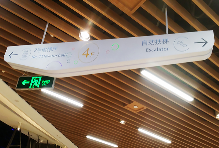商場室內指引牌:在商場內設置壁掛式指引牌,用于指引顧客到達不同的樓層和品牌店鋪。指引牌標注清晰的樓層號碼和店鋪名稱,并配有地圖和箭頭指示,幫助顧客快速找到目的地。商場的壁掛式指引牌制作方案可以采用亞克力板材制作,選擇醒目的顏色和字體,使顧客更容易識別。