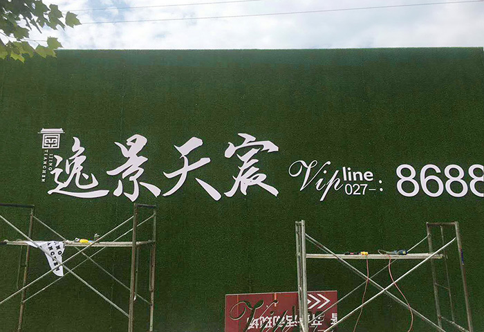本次廣告工程采用廣告綠植包墻面,突出綠色環保的理念。廣告字采用白色PVC雕刻而成,既環保又省錢,還能達到預期的廣告效果。